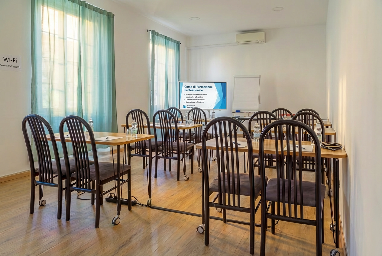 Uno spazio pensato appositamente per accogliere corsi di formazione, lavori di gruppo e riunioni.