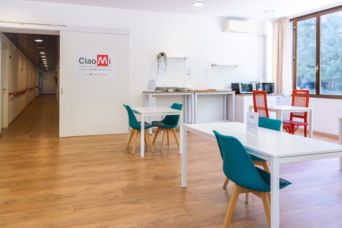 Climatizzatore, sedie, frigorifero, tv, proiettore, Wi-Fi.